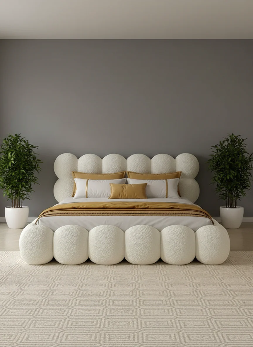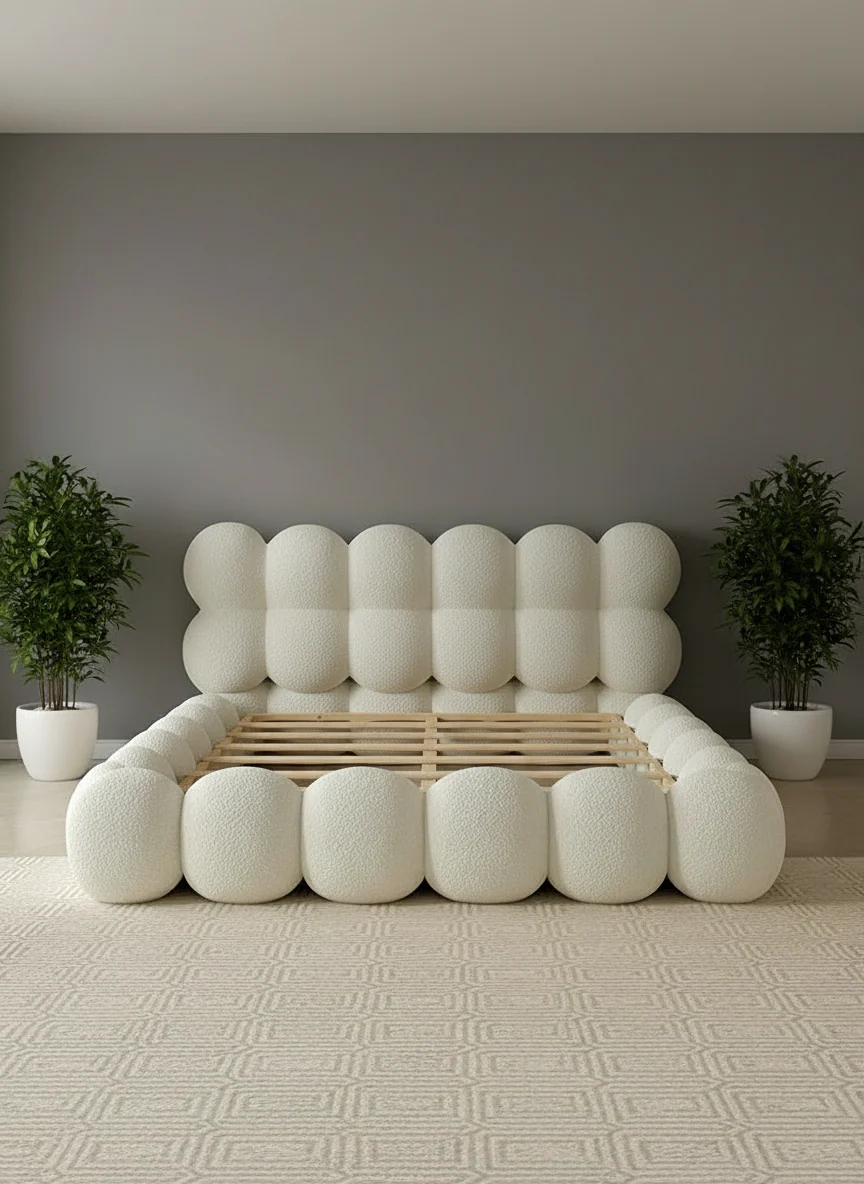 Distance from top of side rail to floor: 18″ - Fabric: Premium Boucle (customizable)