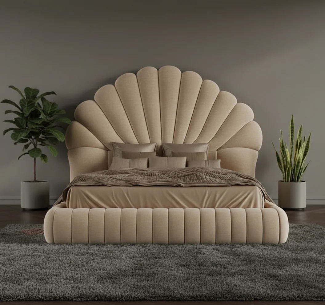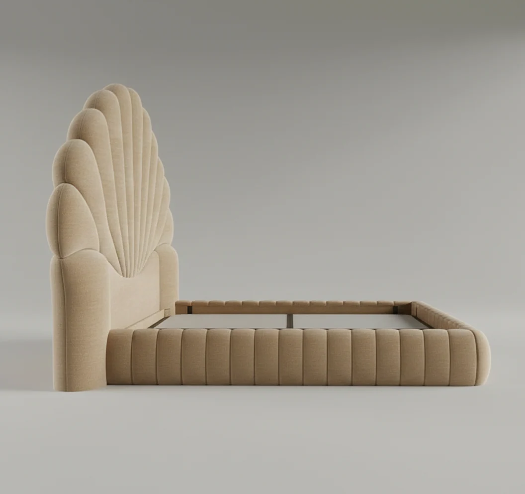 Perfect For: Modern luxury bedrooms, Art Deco interiors, boutique hotel-inspired spaces, and contemporary glam designs. This statement bed pairs beautifully with ambient LED lighting, metallic accents, and minimalist decor.