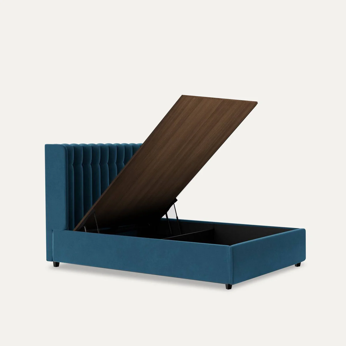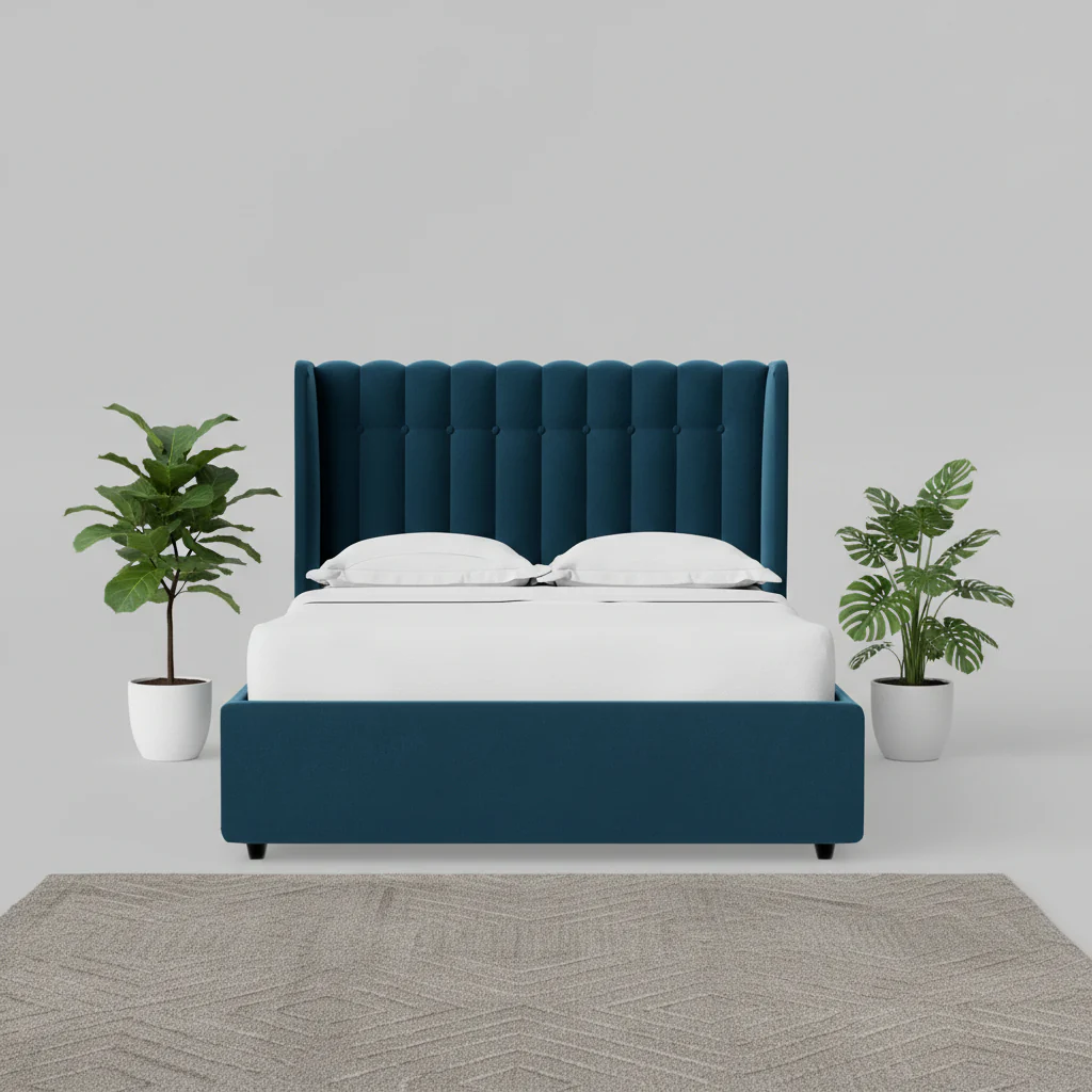 Distance from top of side rail to floor: 14″ - Fabric: Blue Colour Soft Velvet (customizable)