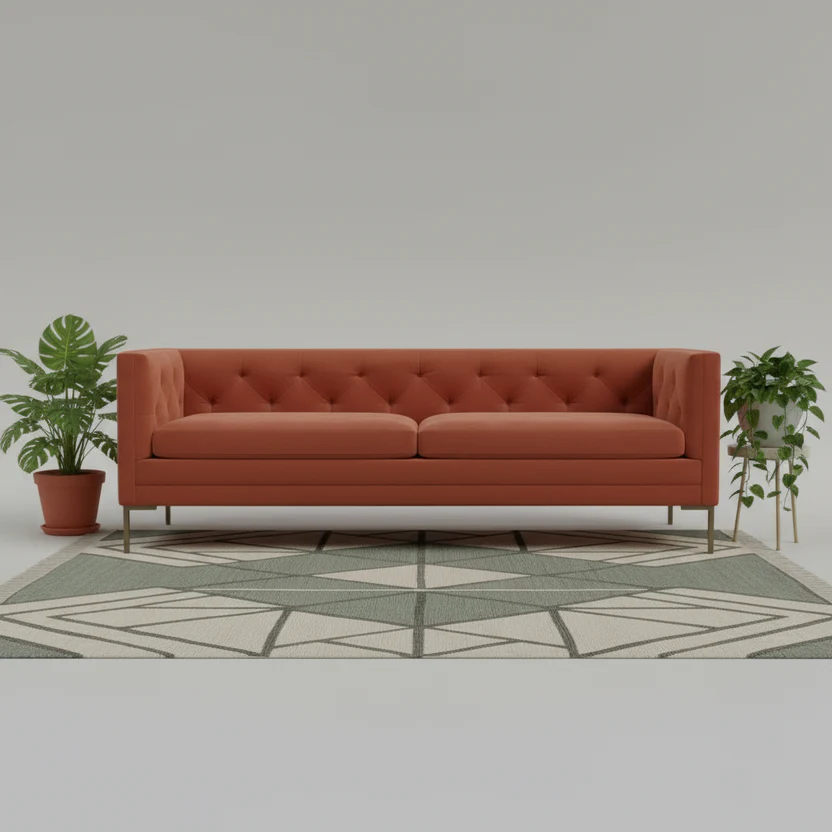 The Pamela 6 Seater Sofa (3+2+1) offers a refined blend of traditional tufting and contemporary design, featuring a tailored silhouette that adds architectural interest to any room. Upholstered in soft velvet, it provides both luxurious comfort and durability. Supported by sleek metal legs, this Sofa elevates your living space with its graceful yet sturdy presence, making it an expert choice for stylish and comfortable seating.
